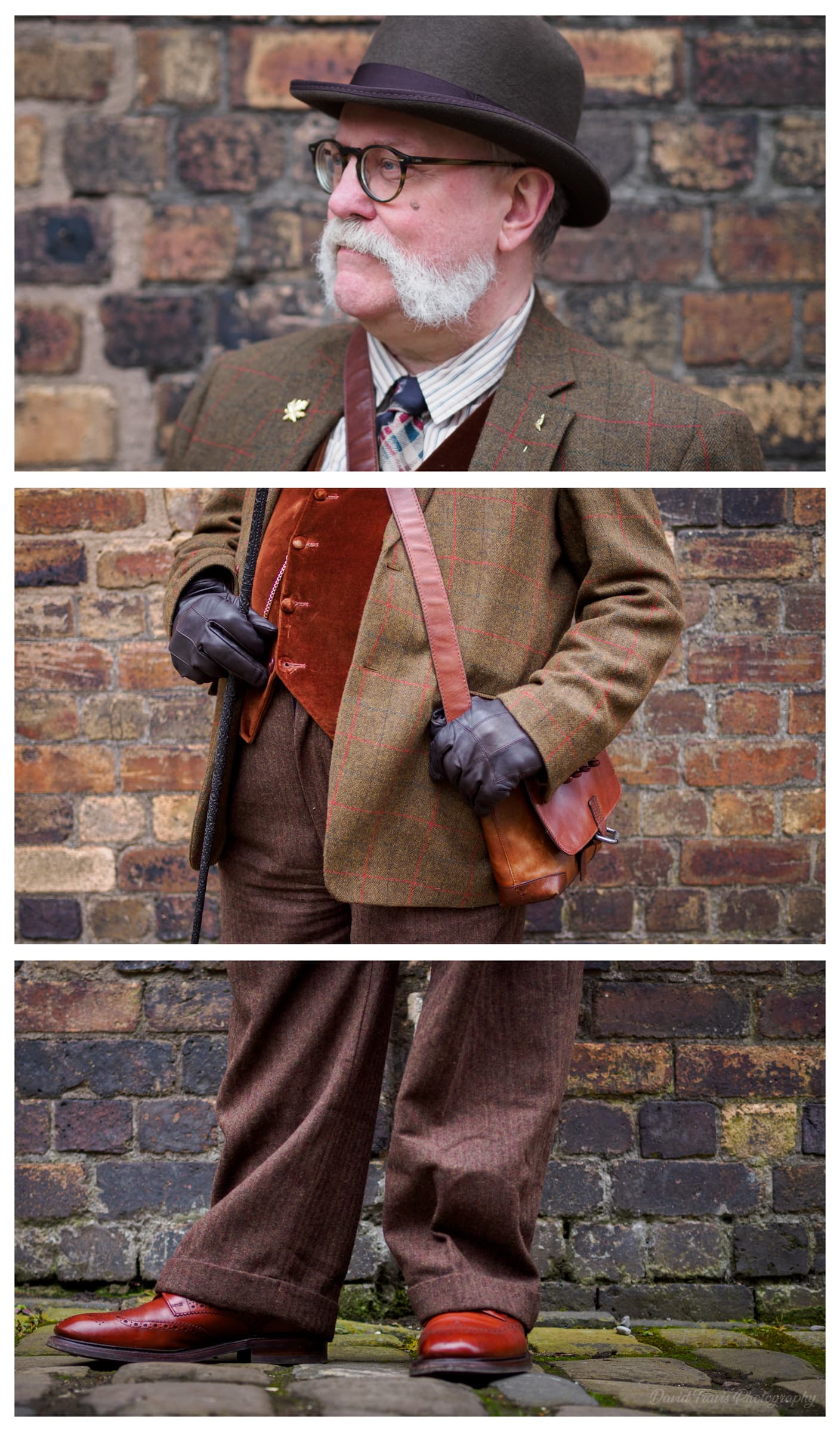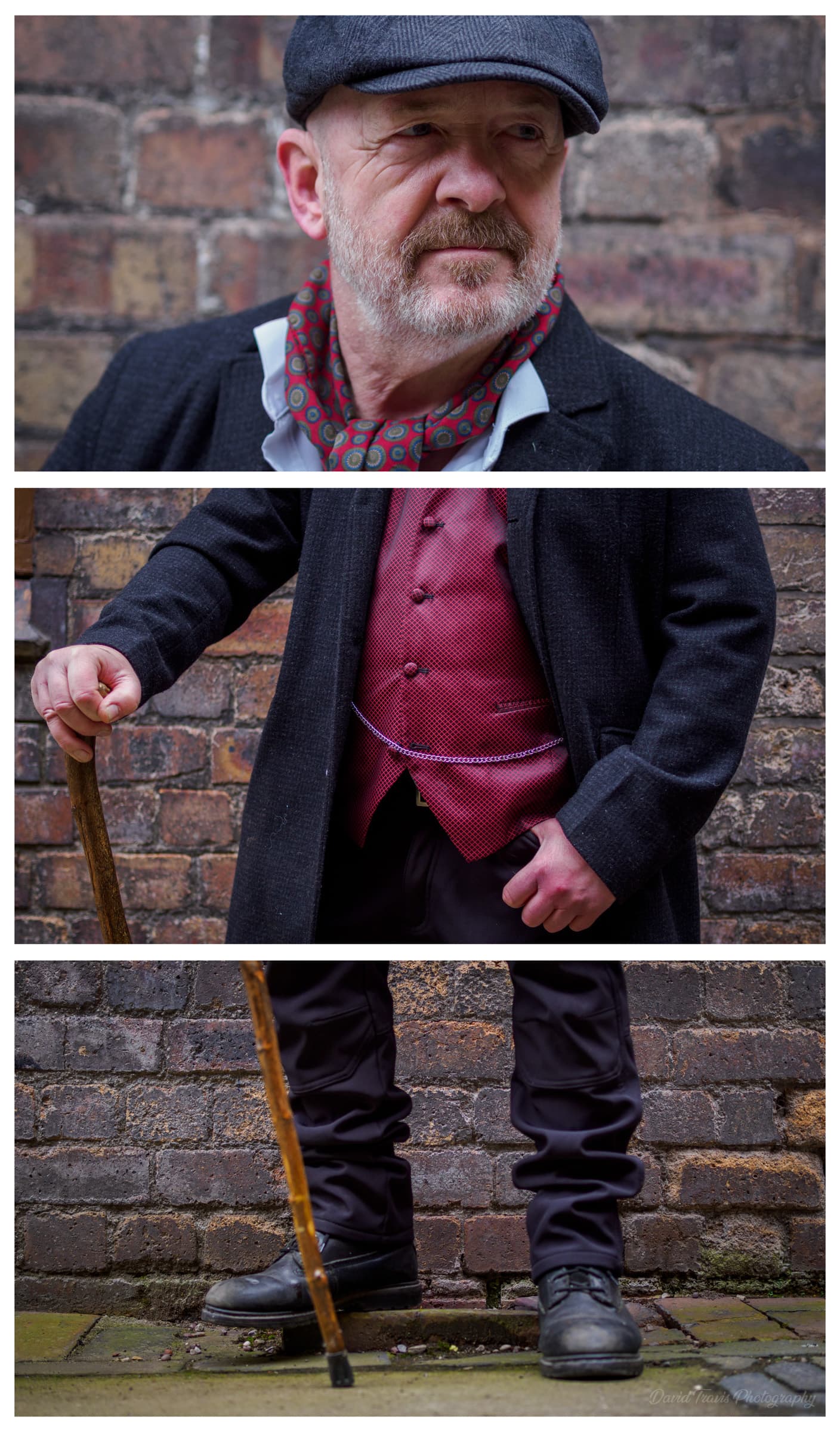 I remembered a treatment I’d used many years ago where I took three panoramic images of a person — head, torso and feet — and then combined them into a kind of collage. In a single image, your eye goes straight to the face. By showing three separate images, the viewer has to look three times. The breaks between the panels interrupt that automatic scan and slow things down, so you spend longer looking at other parts of the body. I thought that would work well here because I wanted to draw attention to the time and effort people put into creating their outfits and not just look at the person's face.